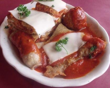 Our homemade recipe, Layers of beef and sausage with layers of scrumptious Ricotta and Romano cheese stuffing. Topped with Mama's sauce.